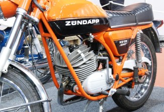 Myös 70-luvun nostalgiaa: Zyndapp KS 125 Sport. Kerrotaan, että tähän runkoon on laitettu Suzuki T250 kone. Katsokaa tuota runkoa – on kyllä huolellista työtä. Myös maalaus ja väri ovat hienoja.