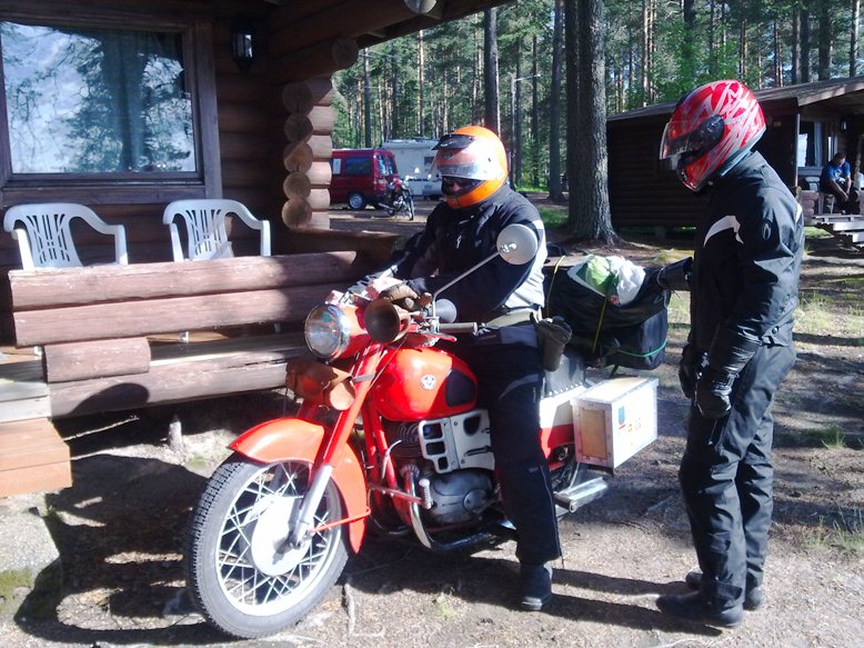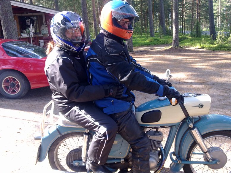 Tässä vielä kuva tämän kesän MZ-tapaamisajoista Sumiaisissa: Olli ja Pirjo MZ ES 150 vm.1963