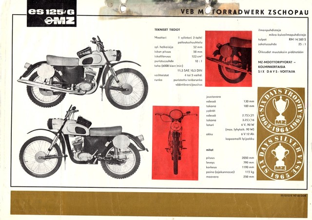 - MZ ES 175 vuosimalli 1959 (käyttöönottovuosi 1960)